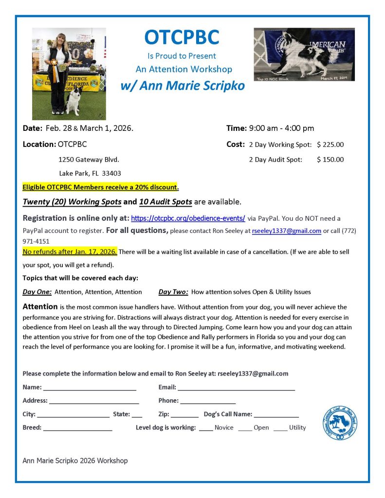 Cost: First entry $10.00 , Second entry $7.00 of the same dog. Dates subject to change.