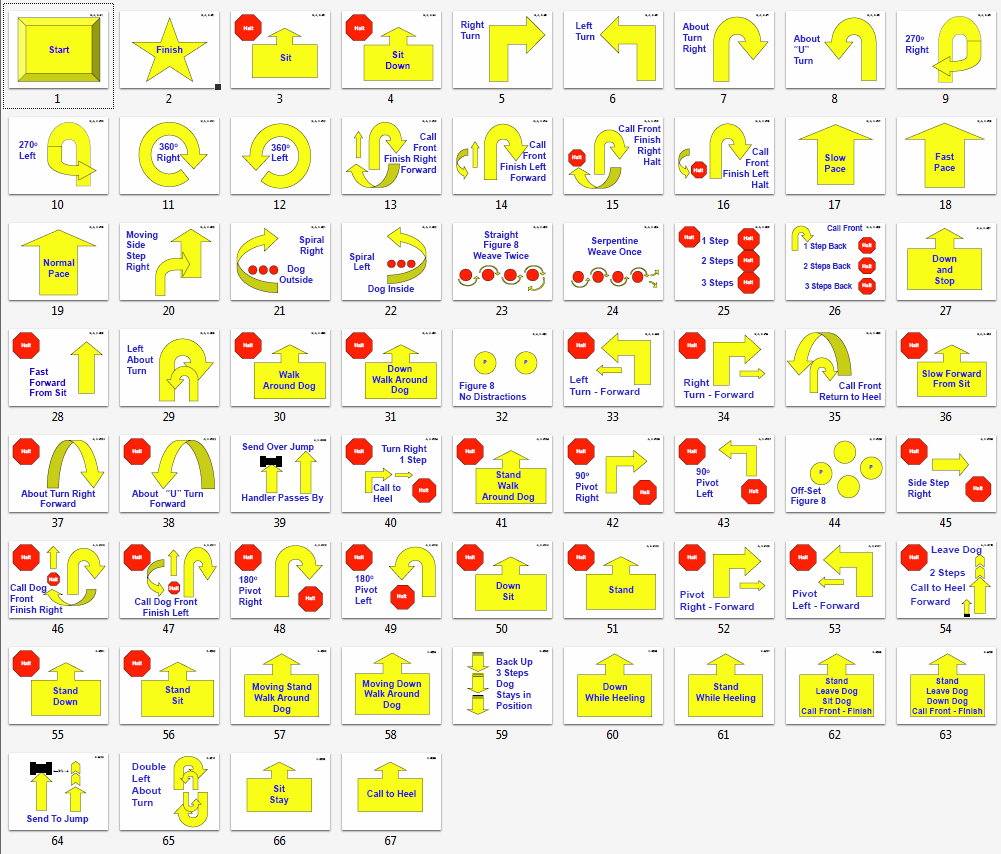 | RO Rally Masters I | Come join us for an exciting new level of rally, the Rally Master class (RM). This level has 28 signs that can only be used in master courses. In competition you would perform off leash and there would be no retries. Courses would have a minimum of 3 advanced level signs 3 excellent level signs and 4 Master level signs and one jump. Dogs will earn the RM title after earning 10 qualifying scores under at least two different judges. To COMPETE in this level dogs must have earned the RE title. In this class we will learn all the signs before including them in courses. The signs are fun but challenging. | Dogs should have a familiarity with lower level signs and know basic skills as well as heeling. No title required to join this class. | Buckle collar or Martingale, 6-foot leash, and treats. |
